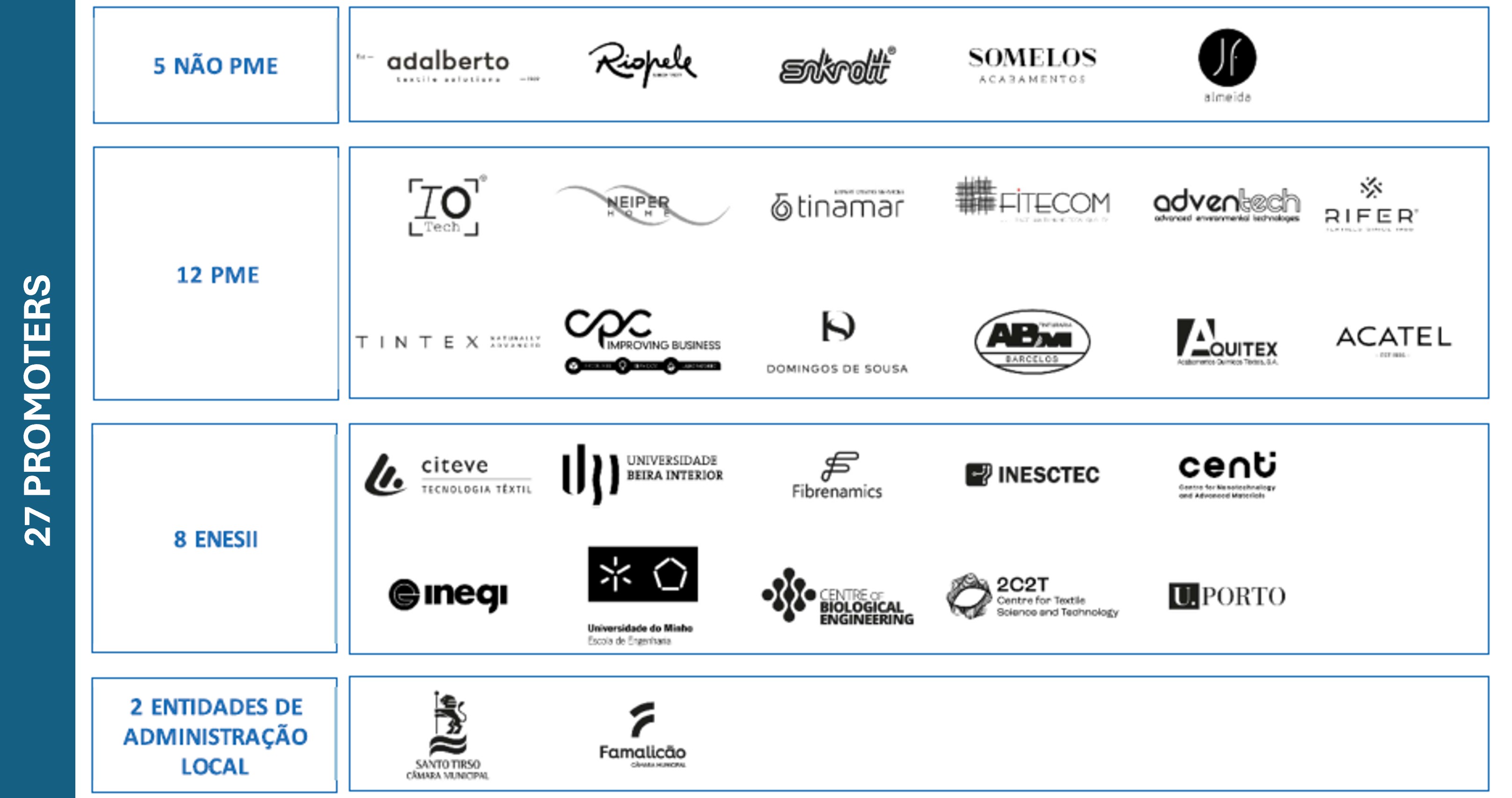 The GIATEX project is composed of 27 partners, of which 5 are non-SME companies, 12 are SME companies, 8 are Non-Business Entities from the Research and Innovation System, and 2 are Local Government Institutions.
